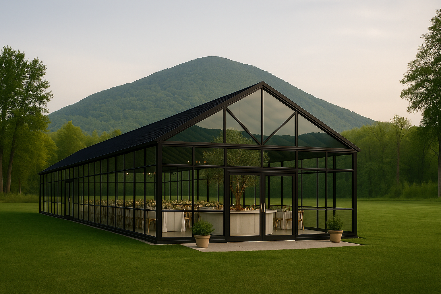 NOW BOOKING: A luxurious glass-walled wedding venue perched atop Virginia’s majestic mountains, offering unparalleled views and timeless elegance for your unforgettable day.